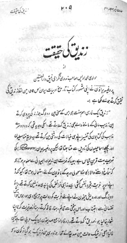 Professor Edward G. Browne, in his well-known work A Literary History of Persia (p. 159), while examining the term zindīq, writes,